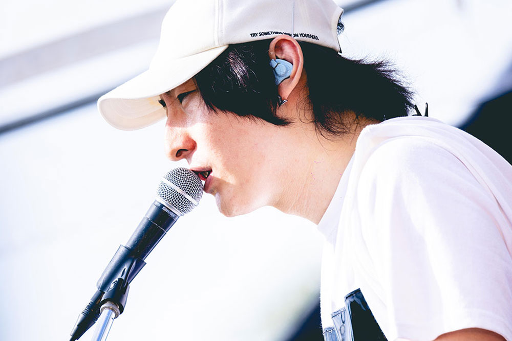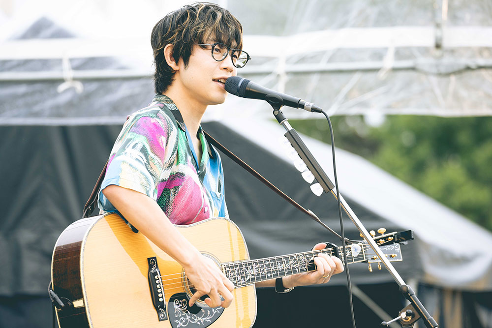 川崎のステージでは雨脚が強くなり、観客の気持ちに少しの不安が見える瞬間も。それでも「この雨のなか、遊びにきてくれた音楽好きが最後まで楽しめるように。リラックスできたな、と思ってもらえるライブがしたい」と意気込みを語る。イベント当日、実は子どもの保育園の運動会と日程が重なってしまったという彼。子どもはかけっこで転んでしまったものの、泣かずに最後までゴールできたと報告を受け、「父ちゃんも雨の中、汗をかきながら、一人一人のために心を込めて歌いたい!」と、「魔法の絨毯」へ。緩やかな空気の中で聴く等身大のラブソング。心情が何度も反芻され、心の奥にしっかり刻み込まれていくのを感じる。