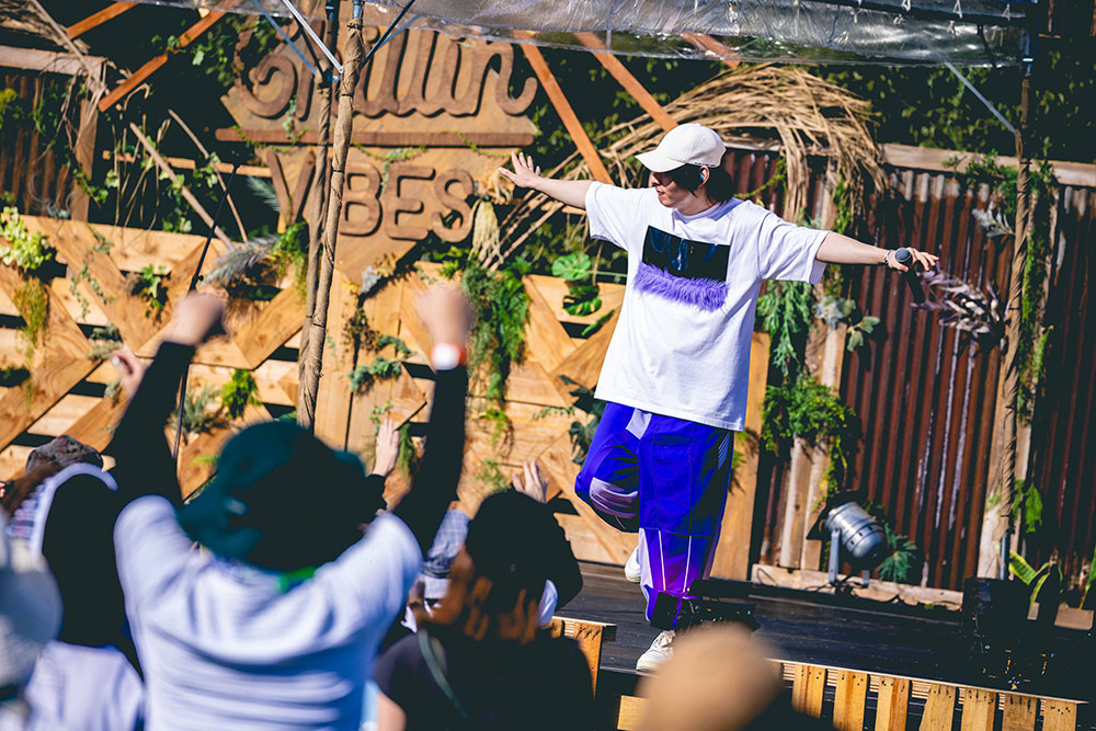 「こんなにも自由で、みんなのリラックスした表情を見ながらのライブは他ではない。気持ちよく歌わせてもらっています!」と、初めての「Chillin' Vibes」を満喫した彼。ラスト「ほろ酔いラブソング」まで、観客との意思疎通もばっちりなステージでトップバッターを駆け抜けた。